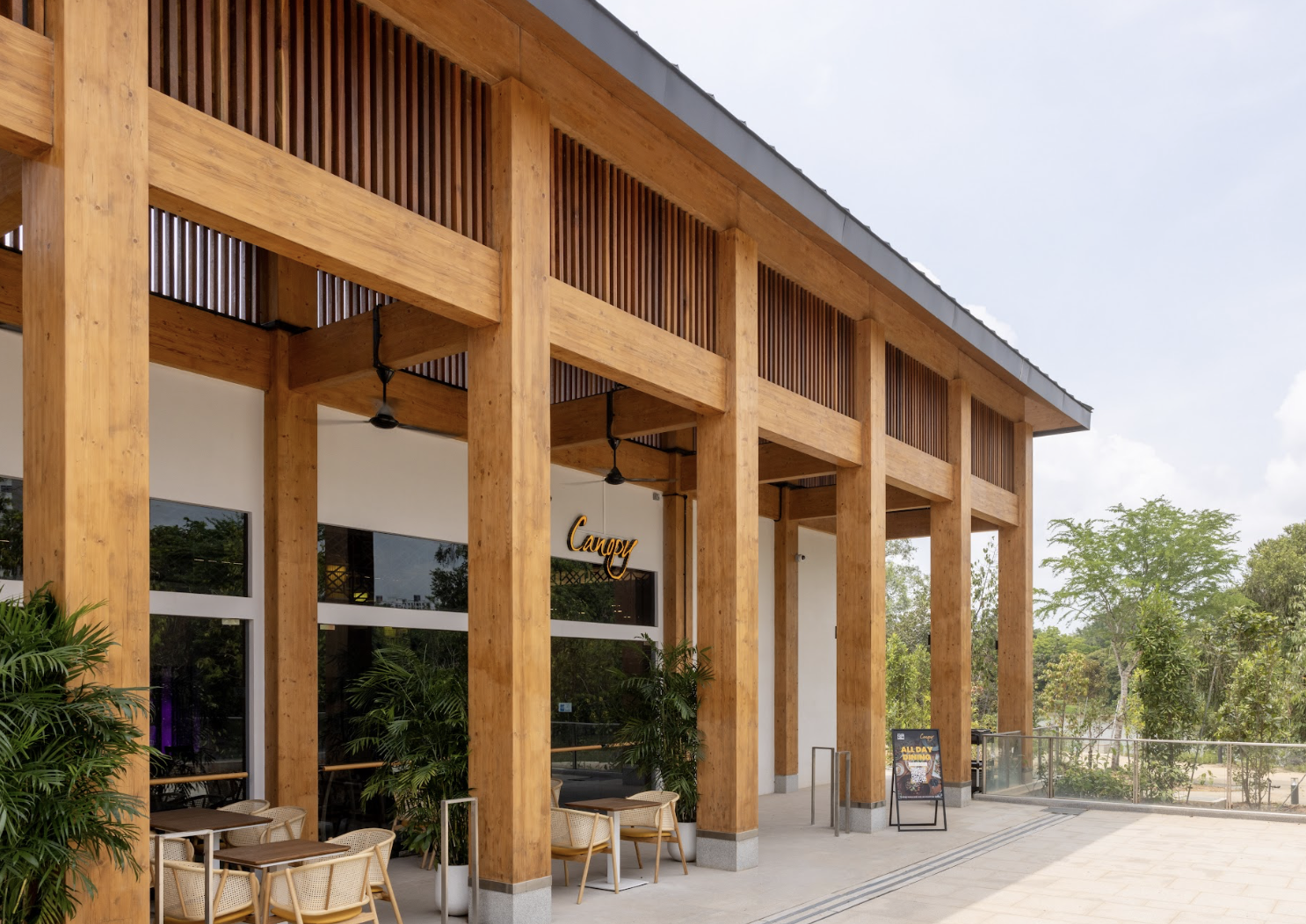 For those living in the West, finding a brunch spot that feels like a true getaway can be a challenge. Canopy Jurong Lake Gardens changes that by acting as a natural extension of the park itself. Our restaurant features a stunning "Bali-esque" architectural design with large wooden beams and an airy, open-concept layout that allows the cooling lakeside breeze to flow through.